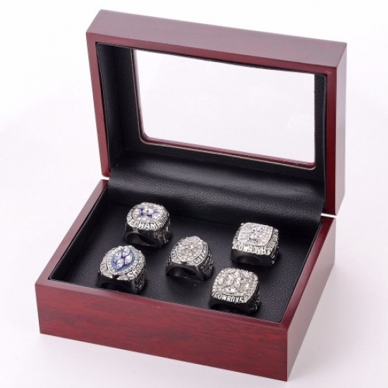 5pcs NFL Super Bowl Cowboys Ring Wooden Box Set Jewelry - No. 12