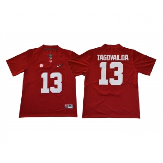 >Alabama Crimson Tide 13 Tua Tagovailoa Red With Diamond Logo College Football Jersey