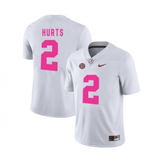 >Alabama Crimson Tide 2 Jalen Hurts White 2018 Breast Cancer Awareness College Football Jersey