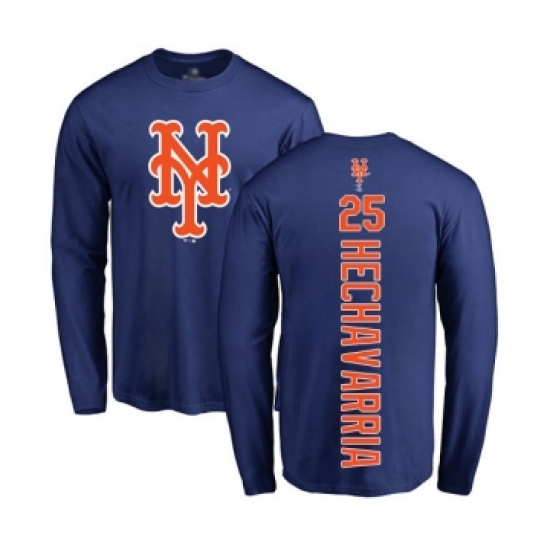 Baseball New York Mets #25 Adeiny Hechavarria Royal Blue Backer Long Sleeve T-Shirt
