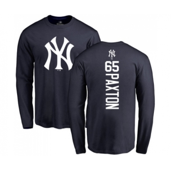 Baseball New York Yankees #65 James Paxton Navy Blue Backer Long Sleeve T-Shirt