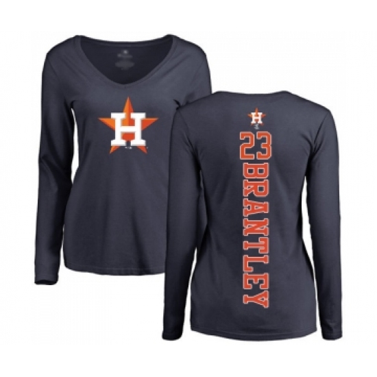 >Baseball Women's Houston Astros #23 Michael Brantley Navy Blue Backer Long Sleeve T-Shirt