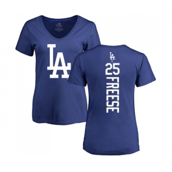 >Baseball Women's Los Angeles Dodgers #25 David Freese Royal Blue Backer T-Shirt