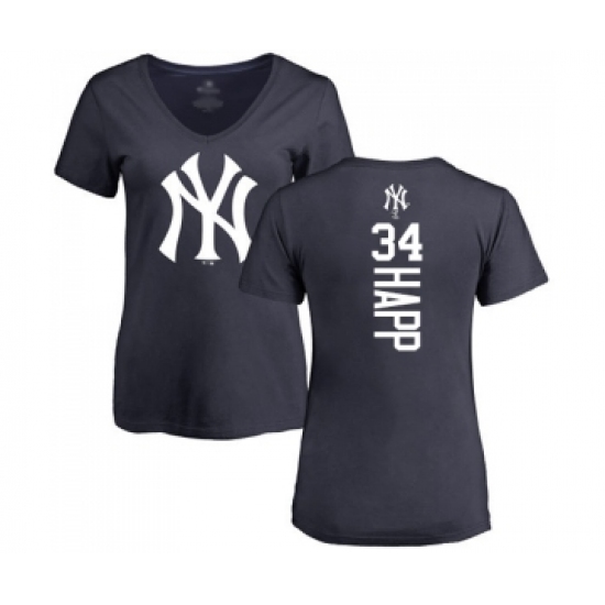 >Baseball Women's New York Yankees #34 J.A. Happ Navy Blue Backer T-Shirt