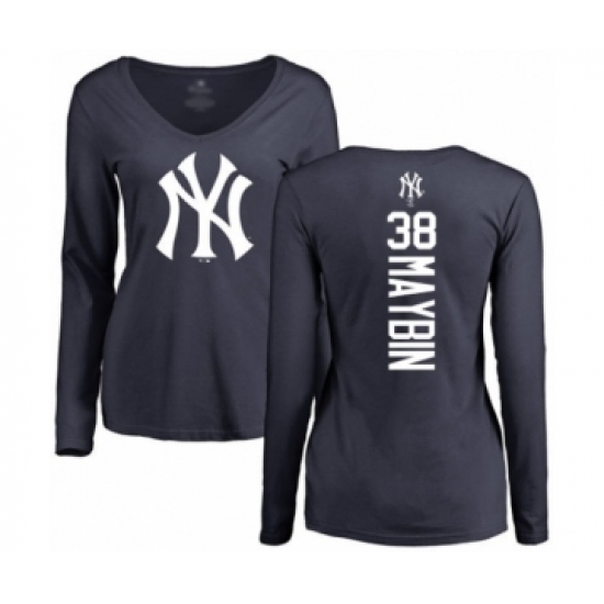 >Baseball Women's New York Yankees #38 Cameron Maybin Navy Blue Backer Long Sleeve T-Shirt