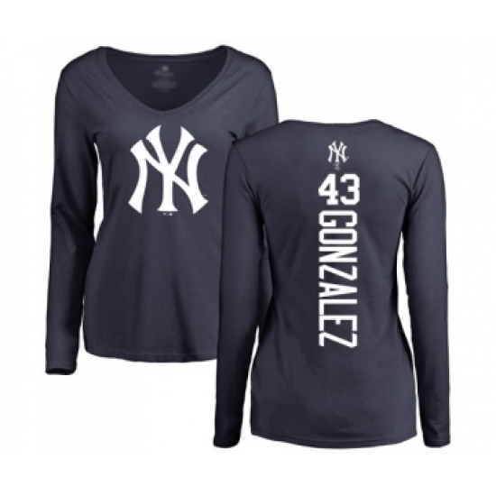 >Baseball Women's New York Yankees #43 Gio Gonzalez Navy Blue Backer Long Sleeve T-Shir