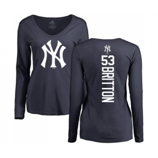 Baseball Women's New York Yankees #53 Zach Britton Navy Blue Backer Long Sleeve T-Shirt
