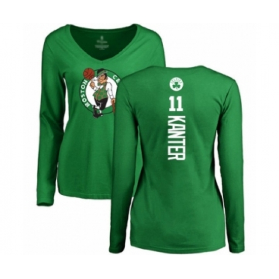 >Basketball Women's Boston Celtics #11 Enes Kanter Kelly Green Backer V-Neck Long Sleeve T-Shirt