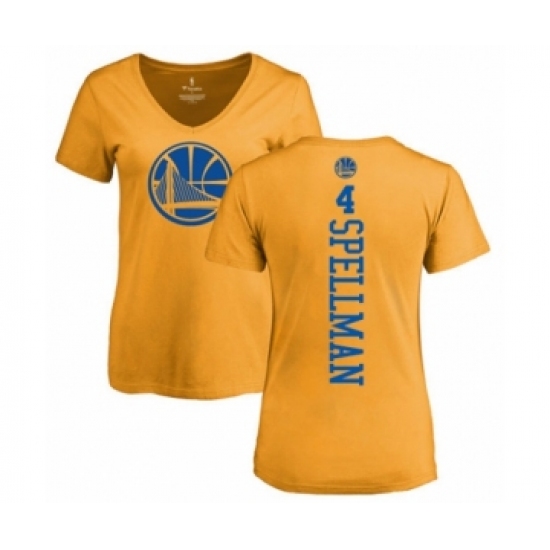 >Basketball Women's Golden State Warriors #4 Omari Spellman Gold One Color Backer Slim-Fit V-Neck T-Shirt