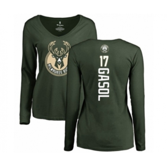 >Basketball Women's Milwaukee Bucks #17 Pau Gasol Green Backer Long Sleeve T-Shirt