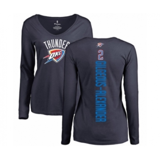 >Basketball Women's Oklahoma City Thunder #2 Shai Gilgeous-Alexander Navy Blue Backer Long Sleeve T-Shirt
