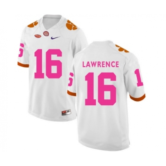 >Clemson Tigers 16 Trevor Lawrence White 2018 Breast Cancer Awareness College Football Jersey