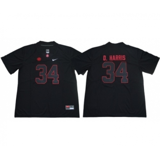 >Crimson Tide #34 Damien Harris Blackout Limited Stitched NCAA Jersey