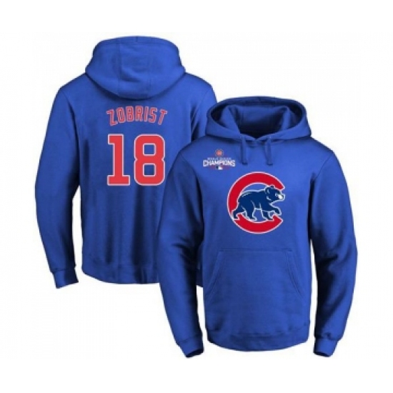 >Cubs #18 Ben Zobrist Blue 2016 World Series Champions Primary Logo Pullover MLB Hoodie