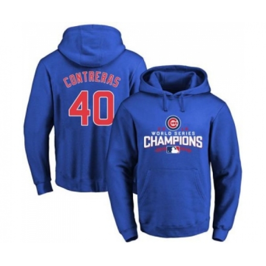 >Cubs #40 Willson Contreras Blue 2016 World Series Champions Pullover MLB Hoodie