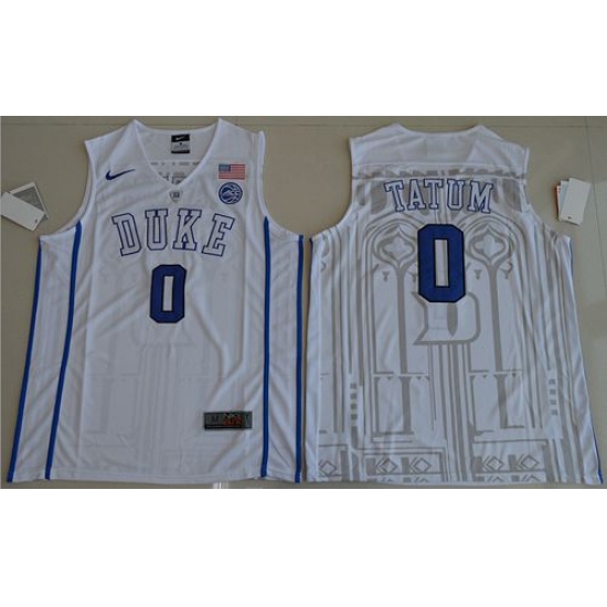 >Duke Blue Devils #0 Jayson Tatum White Basketball Elite Stitched NCAA Jersey