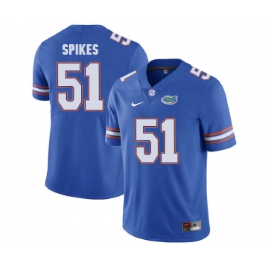 >Florida Gators 51 Brandon Spikes Blue College Football Jersey