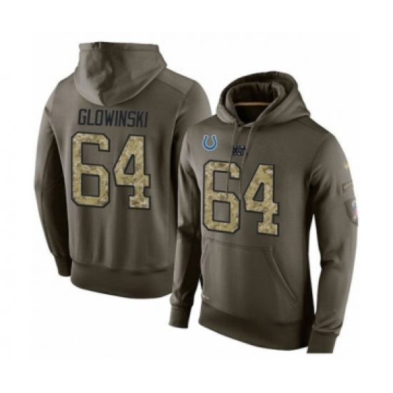 >Football Indianapolis Colts #64 Mark Glowinski Green Salute To Service Men's Pullover Hoodie