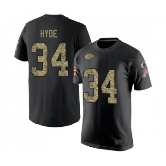 >Football Men's Kansas City Chiefs #34 Carlos Hyde Black Camo Salute to Service T-Shirt