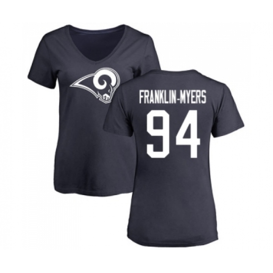>Football Women's Los Angeles Rams #94 John Franklin-Myers Navy Blue Name & Number Logo Slim Fit T-Shirt