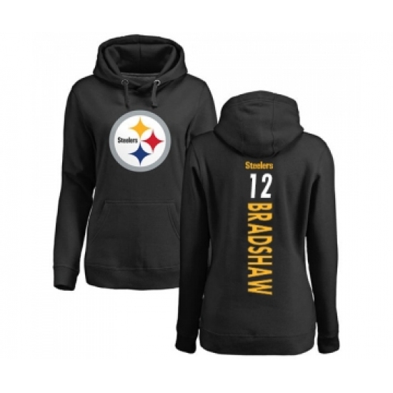 >Football Women's Pittsburgh Steelers #12 Terry Bradshaw Black Backer Pullover Hoodie