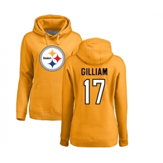 Football Women's Pittsburgh Steelers #17 Joe Gilliam Gold Name & Number Logo Pullover Hoodie
