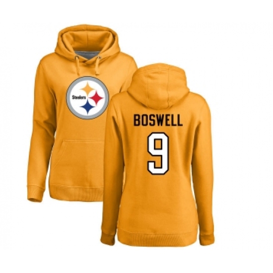 >Football Women's Pittsburgh Steelers #9 Chris Boswell Gold Name & Number Logo Pullover Hoodie