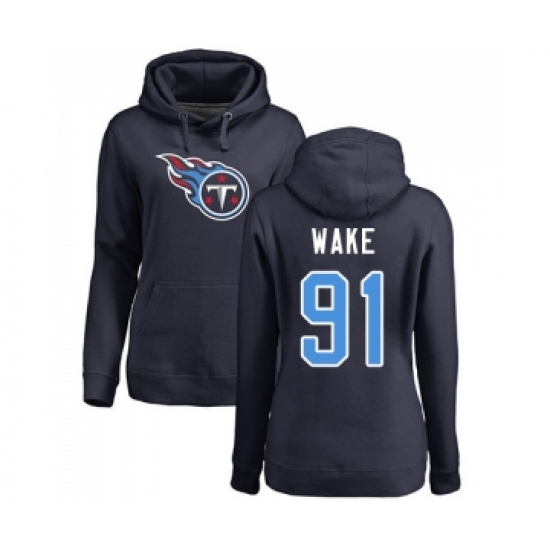>Football Women's Tennessee Titans #91 Cameron Wake Navy Blue Name & Number Logo Pullover Hoodie