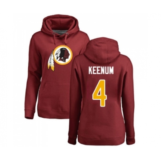 Football Women's Washington Redskins #4 Case Keenum Maroon Name & Number Logo Pullover Hoodie
