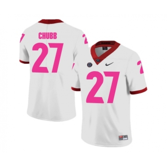 >Georgia Bulldogs 27 Nick Chubb White 2018 Breast Cancer Awareness College Football Jersey