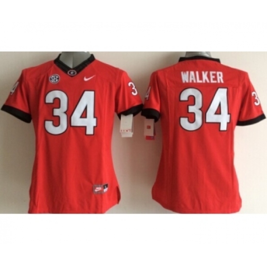 >Georgia Bulldogs 34 Walker Red College Women Jerseys