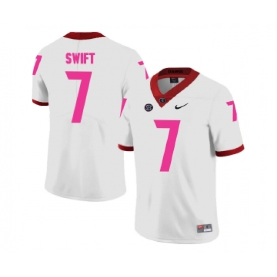 >Georgia Bulldogs 7 D'Andre Swift White 2018 Breast Cancer Awareness College Football Jersey