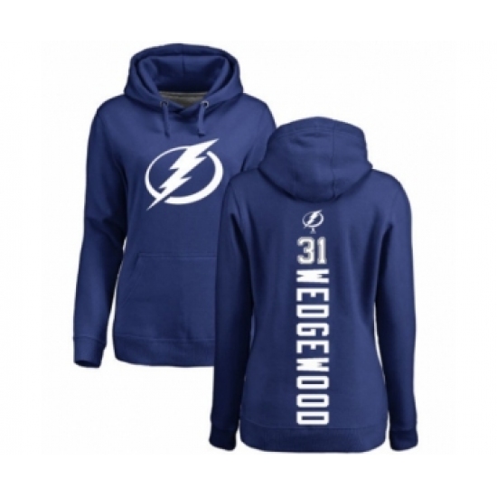 Hockey Women's Tampa Bay Lightning #31 Scott Wedgewood Royal Blue Backer Pullover Hoodie