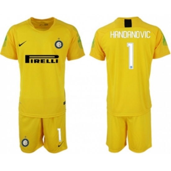 >Inter Milan #1 Handanovic Yellow Goalkeeper Soccer Club Jersey