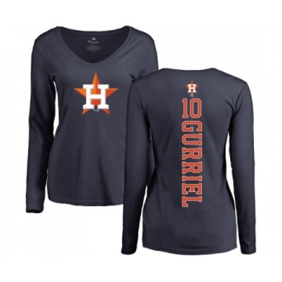 >MLB Women's Nike Houston Astros #10 Yuli Gurriel Navy Blue Backer Long Sleeve T-Shirt