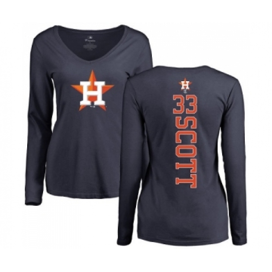 >MLB Women's Nike Houston Astros #33 Mike Scott Navy Blue Backer Long Sleeve T-Shirt