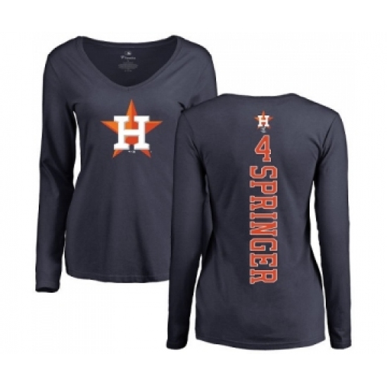 >MLB Women's Nike Houston Astros #4 George Springer Navy Blue Backer Long Sleeve T-Shirt