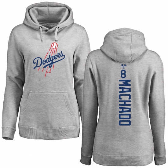 MLB Women's Nike Los Angeles Dodgers #8 Manny Machado Ash Backer Pullover Hoodie