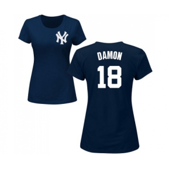 MLB Women's Nike New York Yankees #18 Johnny Damon Navy Blue Name & Number T-Shirt
