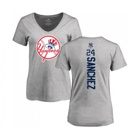 MLB Women's Nike New York Yankees #24 Gary Sanchez Ash Backer T-Shirt
