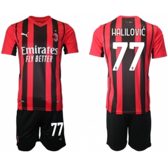 Men 2021-2022 Club AC Milan home red 77 Soccer Jersey