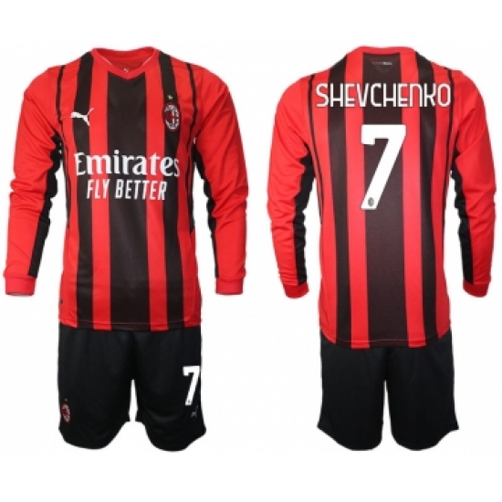 >Men 2021-2022 Club Ac Milan home red Long Sleeve 7 Soccer Jersey