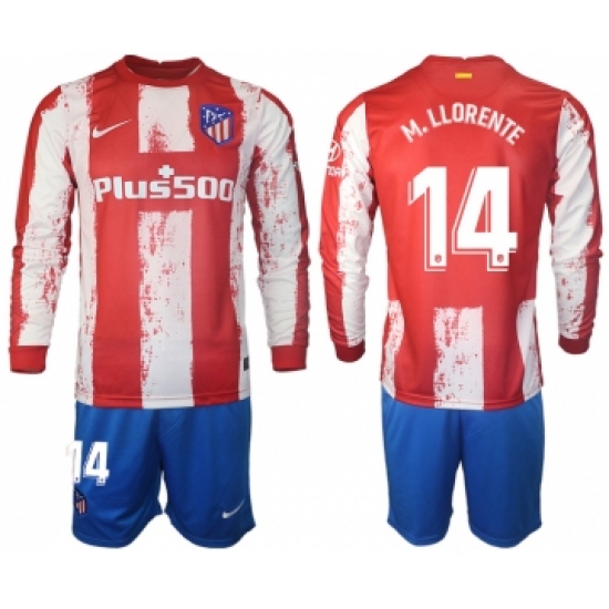 Men 2021-2022 Club Atletico Madrid home red Long Sleeve 14 Soccer Jersey