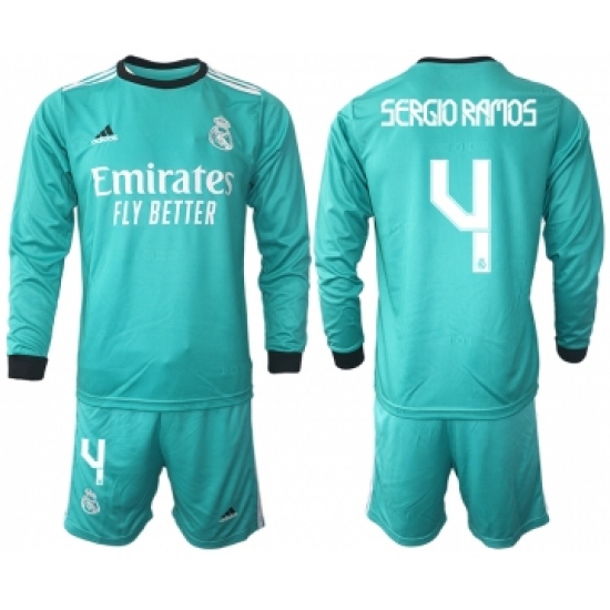 >Men 2021-2022 Club Atletico Madrid second away blue Long Sleeve 4 Soccer Jersey
