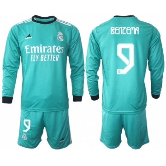 Men 2021-2022 Club Atletico Madrid second away blue Long Sleeve 9 Soccer Jersey