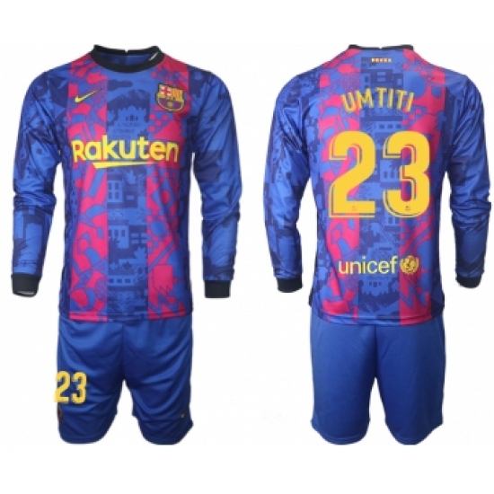 >Men 2021-2022 Club Barcelona Second away blue Long Sleeve 23 Soccer Jersey