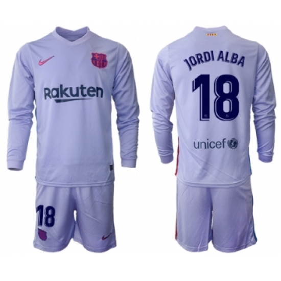 >Men 2021-2022 Club Barcelona Second away purple Long Sleeve 18 Soccer Jersey