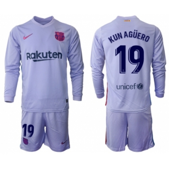 >Men 2021-2022 Club Barcelona Second away purple Long Sleeve 19 Soccer Jersey