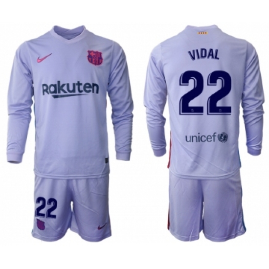 >Men 2021-2022 Club Barcelona Second away purple Long Sleeve 22 Soccer Jersey