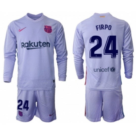 >Men 2021-2022 Club Barcelona Second away purple Long Sleeve 24 Soccer Jersey